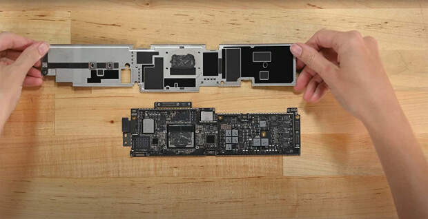Но всё же кое-что мы теперь знаем. К примеру, почему SoC M2 в этом ноутбуке так сильно греется. Как можно видеть, Apple по каким-то причинам решила максимально упростить систему охлаждения.